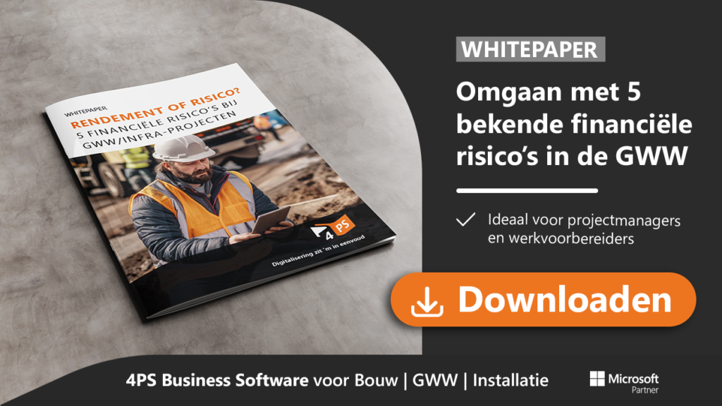 In de GWW-sector is één ding zeker: projecten zijn dynamisch en verandering is een gegeven. Bedrijven moeten voortdurend rekening houden met potentiële risico’s: resources zijn niet goed ingepland, materiaalkosten blijken hoger dan verwacht of de communicatie tussen bouwplaats en kantoor verloopt stroef. Als bedrijven deze risico’s niet vroegtijdig signaleren en aanpakken, kunnen ze het de winstmarge negatief beïnvloeden. Helaas ontbreekt het GWW-bedrijven nog te vaak aan realtime inzicht in projecten waardoor ze belangrijke signalen missen. Ze werken bijvoorbeeld met verouderde data of incomplete calculaties. Wil je risico’s in de GWW wel tijdig signaleren, evalueren en aanpakken? Dan moeten projectmanagers in staat zijn om projecten realtime te monitoren. Goed projectmanagement is in de GWW/Infra dus een must om mogelijke risico’s snel aan te pakken. Wil je meer weten over het verbeteren van projectmanagement? Lees dan ook onze blog ‘Verbeter projectmanagement in de bouwsector‘.